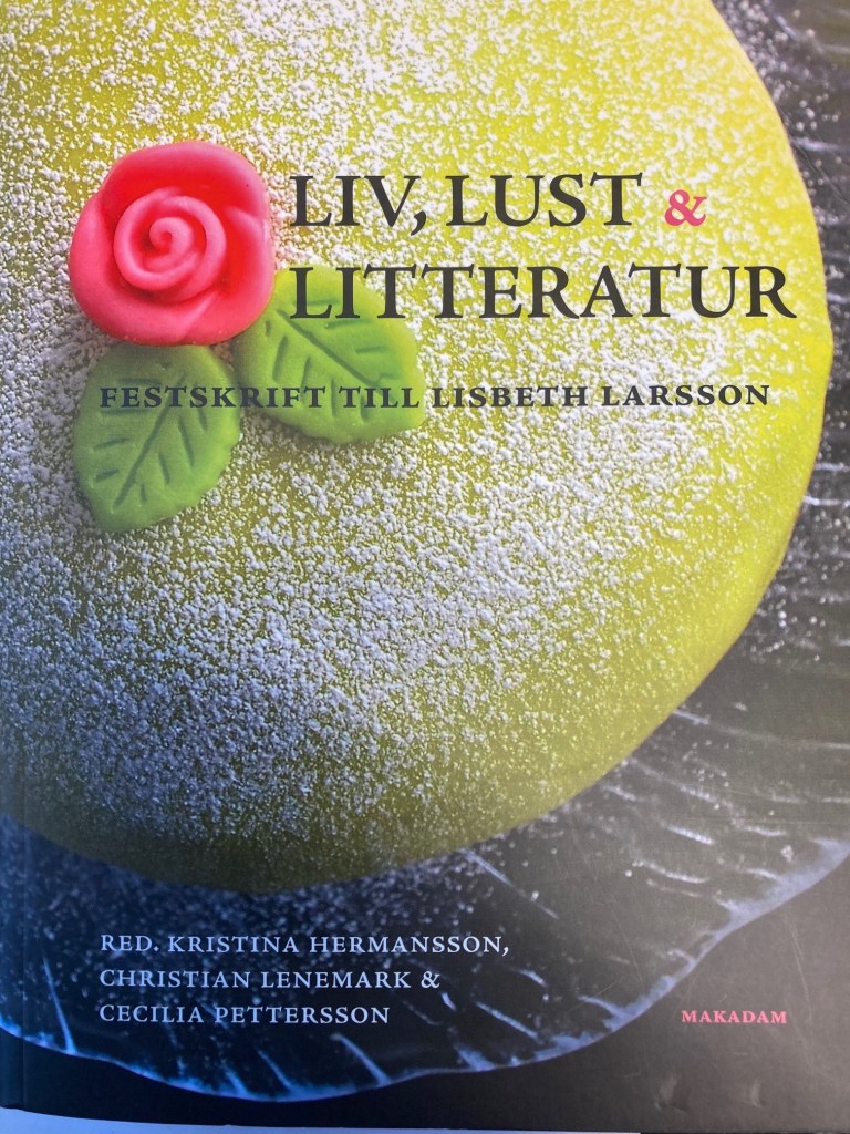 Bilderna är hämtade från omslaget till Liv, lust & litteratur, festskrift till Lisbeth Larsson (red. Kristina Hermansson, Christian Lenemark och Cecilia Petterson), som gavs ut på Makadam 2014.