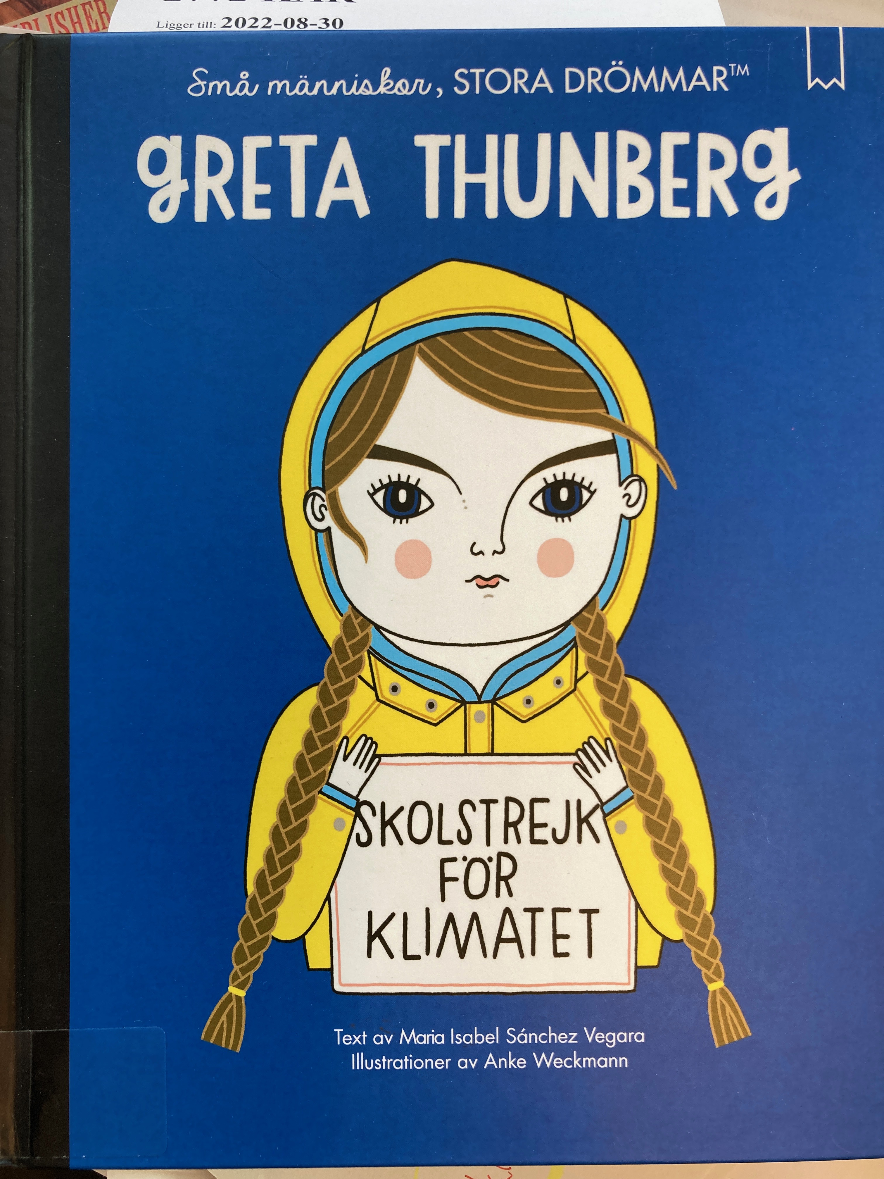 Bok om Greta Thunberg av Maria Isabel Sánchez Vegara, Svenska hjältinnor av Colette van Luik och Anna Nordlund, Alla frågar sig varför av Eva Susso och Anna Höglund (exempel på åldersöverskridande bilderbok)